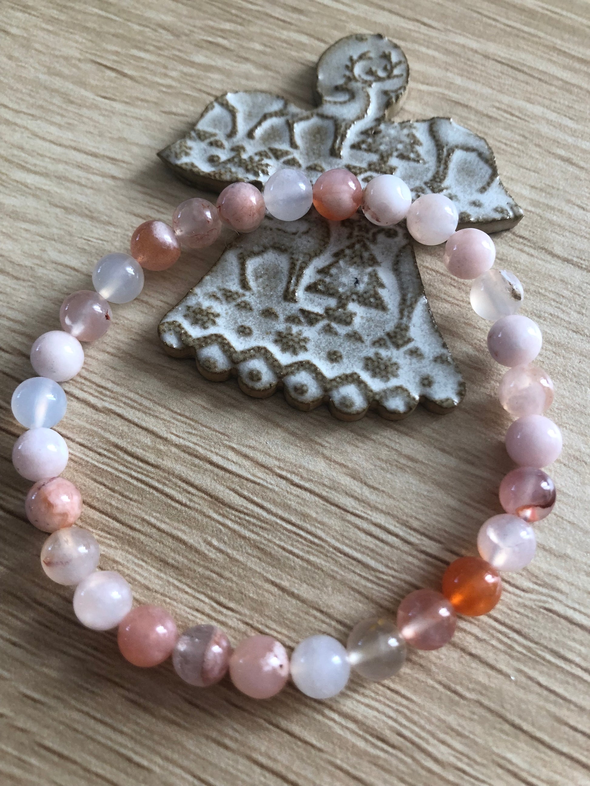 - Matériaux : Agate fleur de cerisier 100 % naturelle, perles de 6 mm.